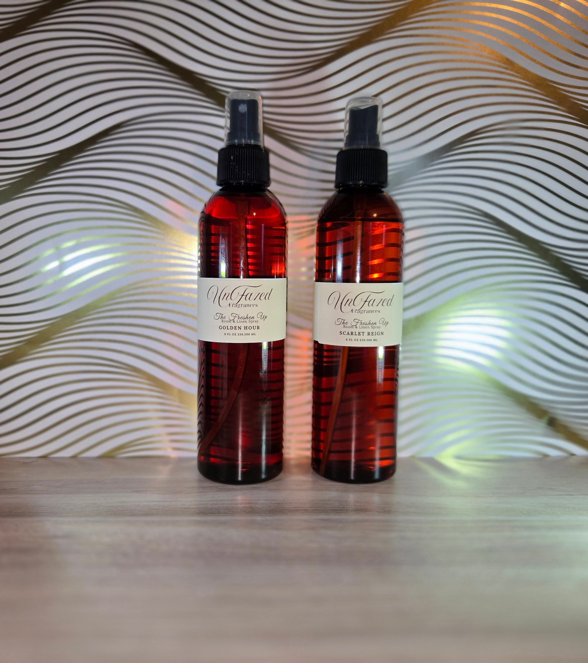 Meet The Freshen Up, your go-to room & linen spray for an effortless burst of luxury. Housed in a sleek 8 oz amber bottle, this fine mist transforms any space with just a few spritzes, leaving behind an elevated, long-lasting scent that lingers.